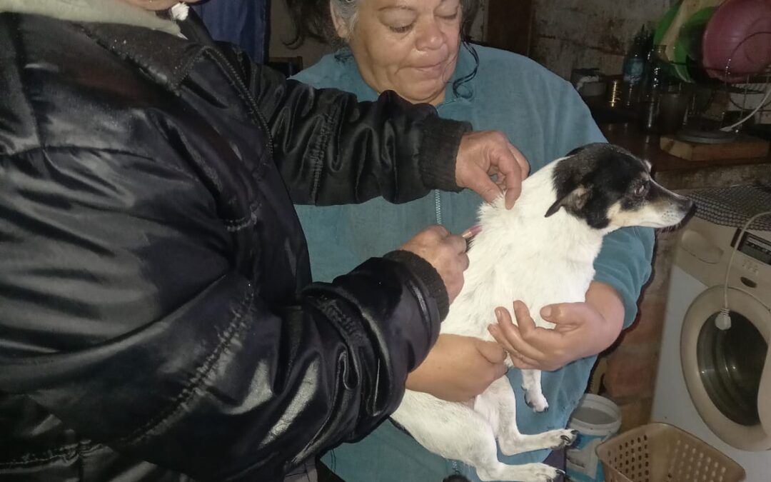 El equipo de veterinarios/as del Centro de Zoonosis municipal, encabezado por la directora del área, Rosario Guarrochena, visitó los domicilios del sector donde fue encontrado el murciélago que dio positivo para rabia y hasta el momento lleva vacunadas más de 110 mascotas.