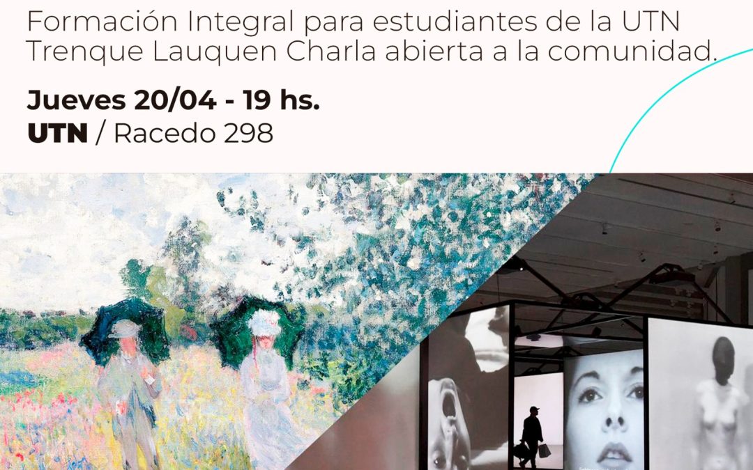 “Para qué me sirve el arte si quiero ser ingeniero”, es la propuesta de una charla orientada a estudiantes de la Facultad Regional Trenque Lauquen de la UTN y abierta a la comunidad, que organizan el Museo Municipal de Artes Visuales (MUMAV) y la dirección de Cultura y Educación del Municipio, a cargo de la Licenciada en Artes Plásticas, Juanita Sánchez, y que tendrá lugar pasado mañana (jueves) a las 19 en la sede de la UTN Trenque Lauquen, en Racedo nº 298.