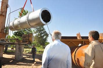 El Intendente Municipal, Cdor. Raúl Feito y el Secretario de Obras y Servicios Públicos, José Carabelli, presenciaron el momento en que se retiró el cilindro original que tenía 50 años de antigüedad y se colocó el sofisticado cilindro de horno secador para la planta BLH 1000, adquirido por la Comuna mediante Licitación.