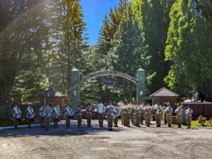 Por su parte, la Banda Militar “Malvinas Argentinas”, que forma parte de esta Unidad, posee una destacada trayectoria ligada a la evolución del Regimiento. Sus antecedentes se remontan a los antiguos toques de clarines que acompañaban a las tropas en campaña, consolidándose como formación musical organizada en la década de 1960, tras el traslado del Regimiento a la ciudad de Esquel.