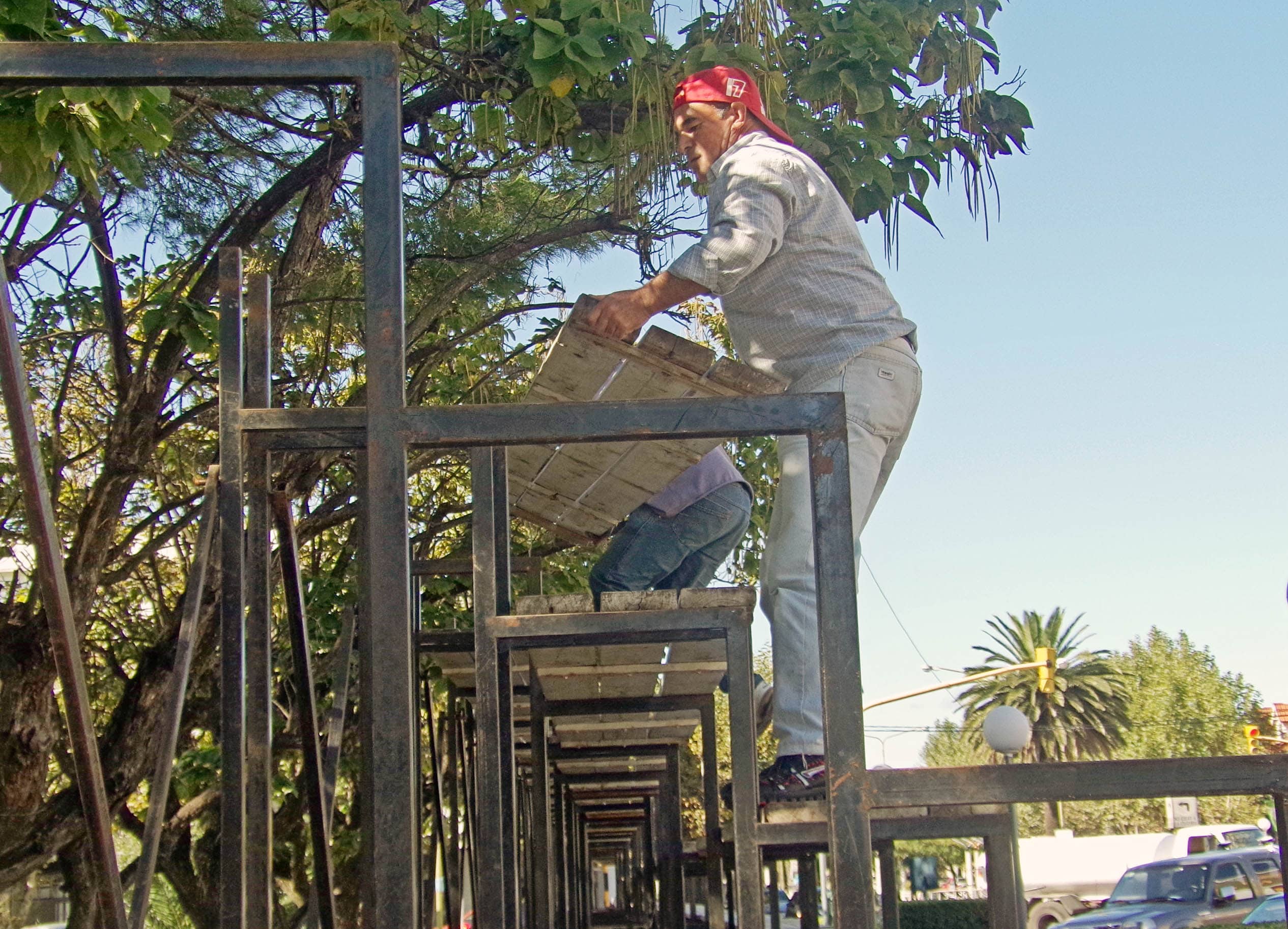 La Municipalidad de Trenque Lauquen inició hoy (martes) el armado de gradas para los festejos del 140º aniversario de la ciudad.