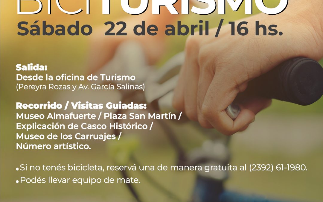 En una iniciativa Impulsada por la oficina de Promoción Turística y la dirección de Cultura y Educación del Municipio, el sábado de la próxima semana (22) a partir de las 16 se realizará el Primer Circuito Bici Turismo, que invita a recorrer en bicicleta distintos sitios históricos y espacios públicos de la ciudad.