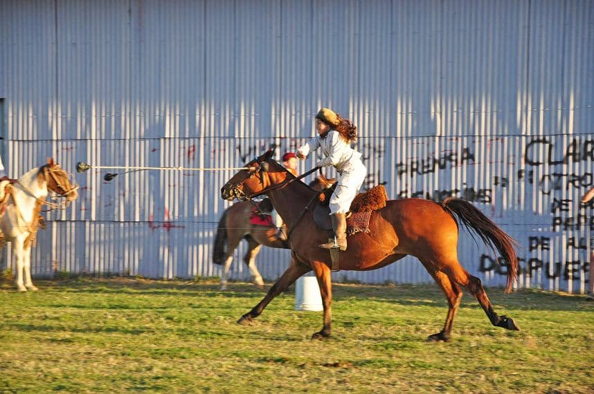 Hubo un desfile a caballo de los centros tradicionalistas locales y de la región, y posteriormente comenzaron los juegos.