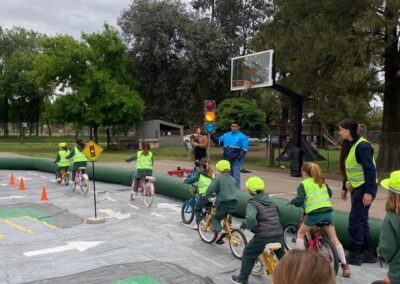Durante la jornada, las agentes Agustina Costa, Sofía Cabrera y Verónica Celi a cargo de la actividad, también presentaron y plantearon actividades en la Pista de Educación Vial que les permitió a los chicos/as practicar y reconocer las señales de tránsito, con un sentido lúdico y de aprendizaje.