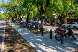 La intervención viene siendo realizada por la Municipalidad de Trenque Lauquen con fondos propios y tiene como objetivo ordenar el estacionamiento y mejorar la circulación de bicicletas y motos en el sector de alta concurrencia.