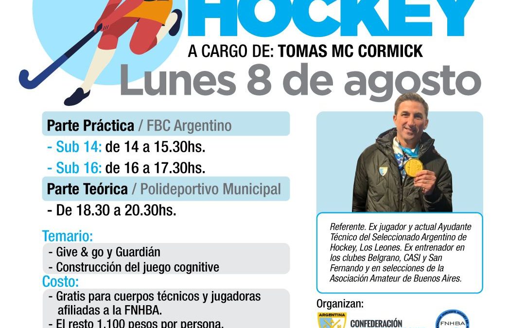 En el marco del Plan Nacional de Capacitación y Desarrollo 2022, el experimentado entrenador y referente del hockey sobre césped en nuestro país Tomás Mc Cormick estará al frente de una jornada teórico/práctica dirigida a entrenadores, preparadores físicos y jugadoras de esa disciplina a desarrollarse el próximo lunes (8).