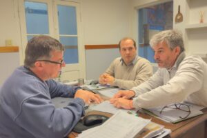 El intendente Francisco Recoulat se reunió en Beruti con el delegado municipal, Matías Parras, para tratar temas vinculados a la gestión y recorrieron distintos puntos de la localidad, uno de ellos donde está trabajando la nueva desmalezadora adquirida por el Municipio que ya está en pleno funcionamiento y operativa al servicio de la comunidad.