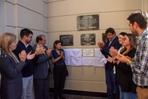 El edificio municipal ya contaba con una serie de placas que se han sumado a lo largo del tiempo y que dan cuenta de la participación de diversas instituciones en la vida comunitaria. Esas placas históricas fueron restauradas y reubicadas por el equipo de mantenimiento del Municipio.