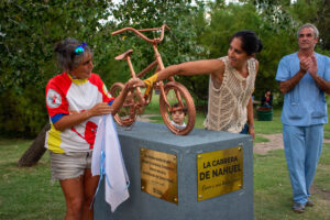 Asimismo, manifestó que “ver a tantas familias presentes emociona profundamente. En nuestro caso, Nahuel nos guía desde el cielo en cada pedaleada, y poder instalar esta bicicleta de la campaña Rutas Doradas por el Cáncer Infantil es una forma de sembrar conciencia”.