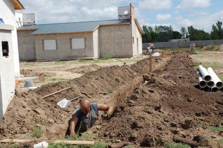 En el loteo de Singlar se comenzaron a realizar las acometidas domiciliarias de conexión de cloacas en las casas del barrio de 54 viviendas, próximo a entregarse.