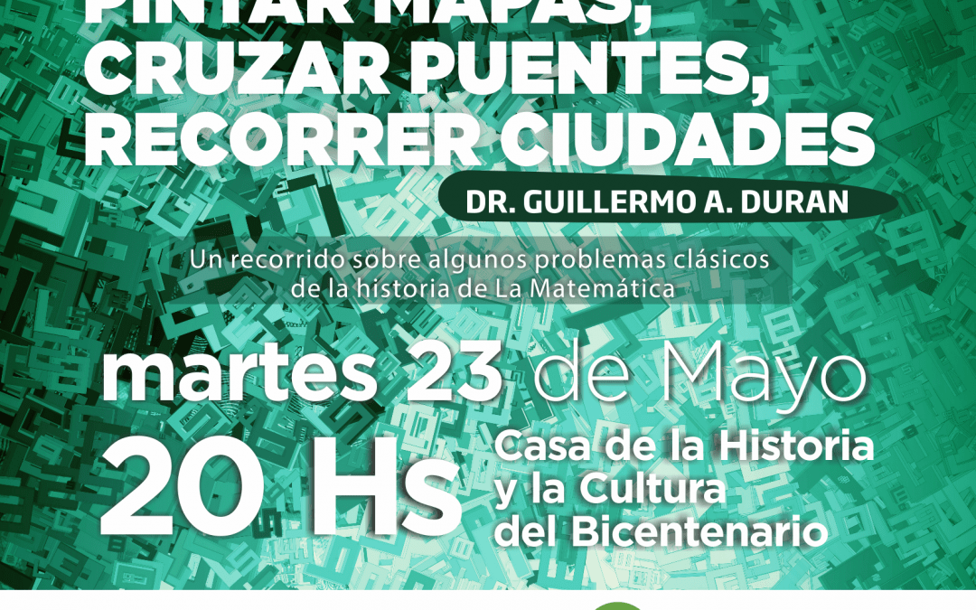 En esta oportunidad se realizará una charla a cargo del Dr. Guillermo Durán denominada “Pintar mapas, cruzar puentes, recorrer ciudades. Un recorrido sobre algunos problemas clásicos de la historia de la Matemática”.