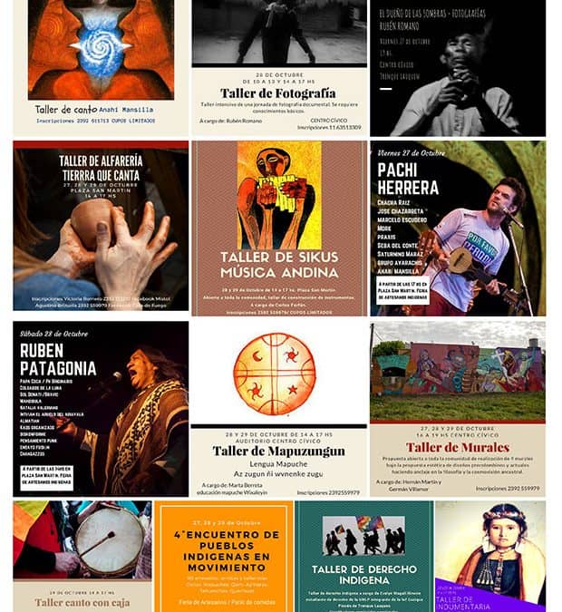 La Comunidad Mapuche Tehuelche “Cacique Pincén” organiza diferentes talleres y dos noches de recitales en el marco del IV Encuentro de Pueblos Indígenas en Movimiento que tendrá lugar los días 27,28 y 29 de octubre.
