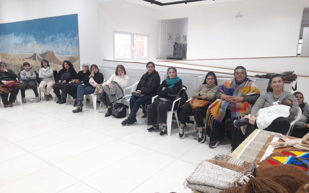 Del taller participaron Rosa Maldonado y Emilia Haberkorn de Bocca (2 de las homenajeadas en la muestra Witral, junto a Beba Bernattá), la lonko de la Comunidad Mapuche Tehuelche Cacique Pincén, Isabel Araujo, y mujeres y artesanas interesadas en el telar mapuche.