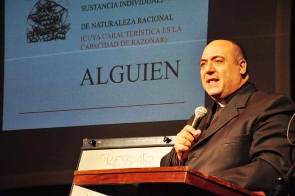 La disertación estuvo a cargo del sacerdote Ruben Revello, Licenciado en Teología Moral por la UCA, casa de estudios donde se desarrolla como Consejero titular de la Facultad de Ciencias Médicas, Director de la Maestría en Ética Biomédica, Docente e Investigador del Instituto de Bioética, docente, entre otras actividades relacionadas con la temática.