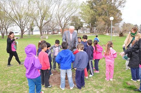 Estuvieron presentes el Intendente Municipal, Raúl Feito, la Secretaria de Gobierno, Edith Daneri; la Secretaria de Desarrollo Humano, Liliana Piras; la Coordinadora del Departamento de Medio Ambiente, Estela Toniolo y la consejera escolar Soledad Rosas. También participaron del acto Personal del vivero municipal, alumnos y personal del Jardín Maternal Municipal “Nubecitas”, y abuelos y personal del Hogar Marcelo Castella.