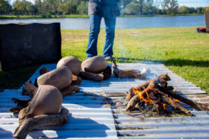 En el marco del taller de cerámica “Tierra vieja, retorno a la huella”, se llevó a cabo una horneada colectiva a cielo abierto en el Anfiteatro “Cacique Pincén”, ubicado en el Parque Municipal “Conrado Villegas”.
