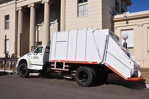 La Municipalidad de Trenque Lauquen exhibe frente al Palacio Municipal 1 camión de recolección de residuos sólidos urbanos, que fue adaptado para realizar esta actividad.