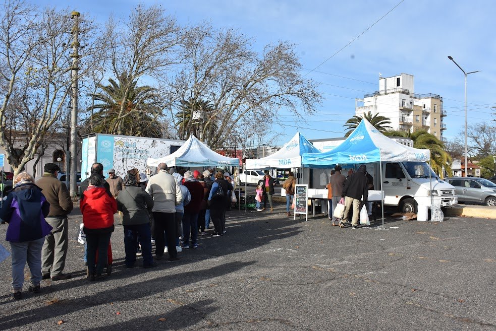 Gran cantidad de vecinos/as se acercaron esta mañana (viernes) al Playón de la Estación (Cuello y Wilde) para comprar productos frescos, pescados y/o lácteos que trajeron los camiones del programa provincial Mercados Bonaerenses, que están de vuelta en Trenque Lauquen, y permanecerán hasta mañana (sábado) acompañando a la Feria Ecofines en el horario de 9 a 13.