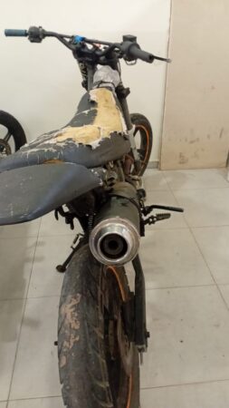 Se trata del segundo secuestro de moto con escape modificado en las últimas 24 horas: una Motomel 150 cc, que contaba con un tanque de nafta peligrosamente improvisado con una botella de plástico.
