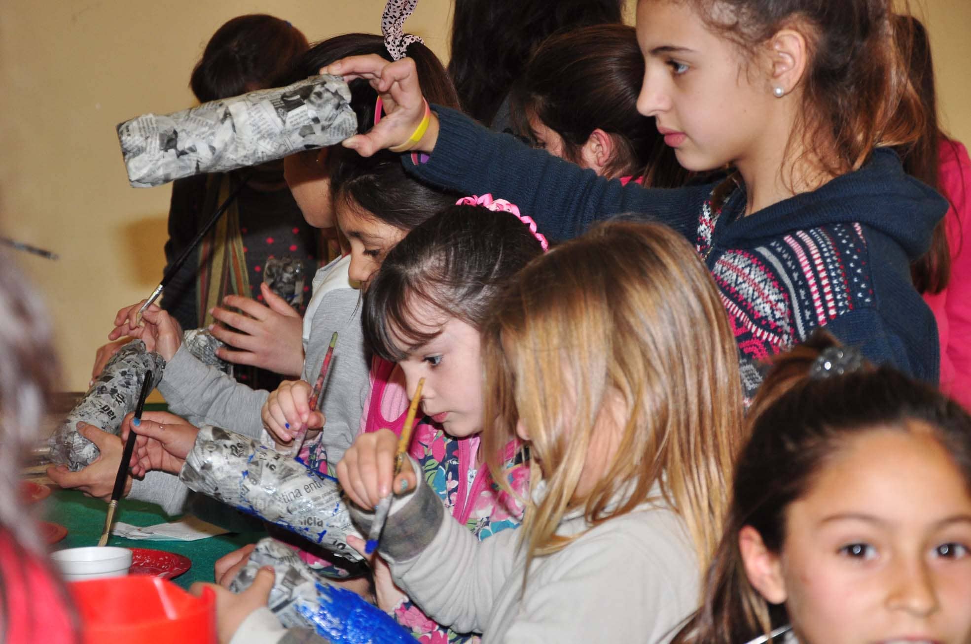En el taller, los niños realizaron una alcancía en forma de pingüino coordinados por la profesora Micaela Amicone y acompañados por la Secretaria de Desarrollo Humano, Liliana Piras.
