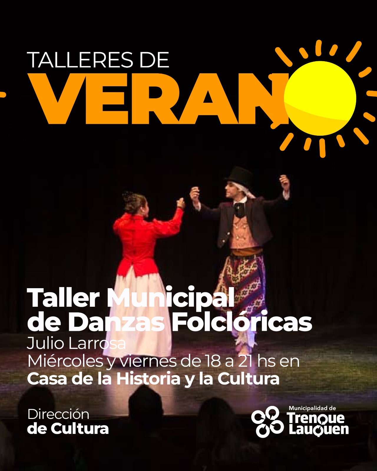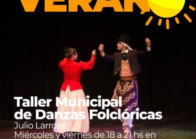 – Taller Municipal de Danzas Folclóricas, a cargo de Julio Larrosa. Se dictará los días miércoles y viernes de 18 a 21 en Casa de la Historia y la Cultura. Está dirigido a jóvenes mayores y adultos. Consultas previas al contacto: 2392 – 541273.