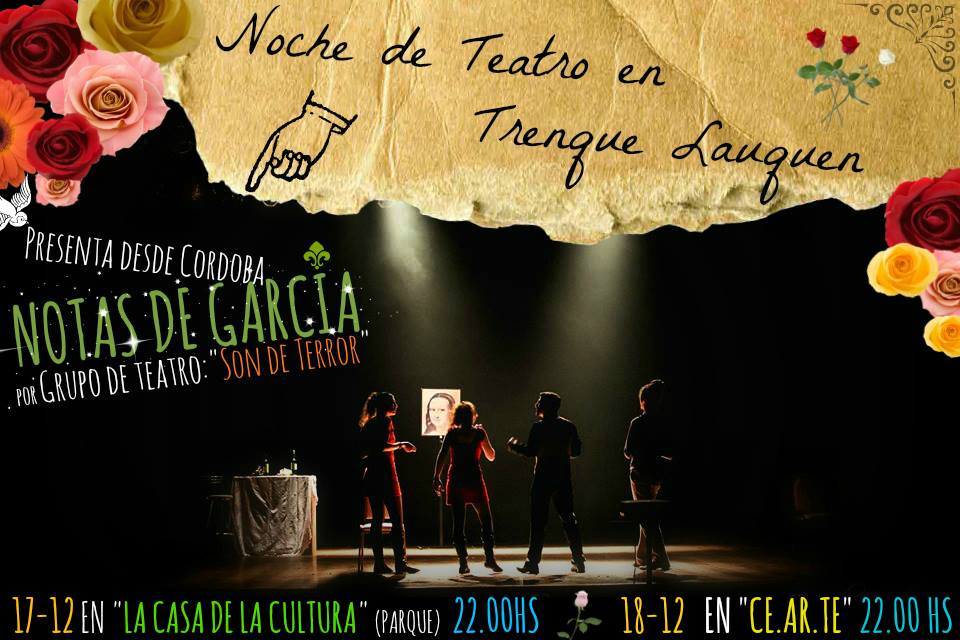 Un grupo de estudiantes de la Licenciatura en Teatro de la Universidad Nacional de Córdoba, se presentará mañana (jueves) en las instalaciones de la Casa de la Historia y la Cultura, con la obra “Notas de García”, a partir de las 22 hs.