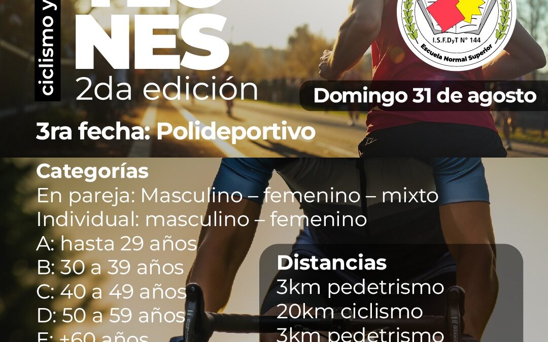 El próximo domingo 31 de agosto tendrá lugar la 3º fecha de la II edición del Campeonato de Duatlones, una propuesta que combina pedestrismo y ciclismo y que sigue creciendo con gran acompañamiento de la comunidad deportiva.