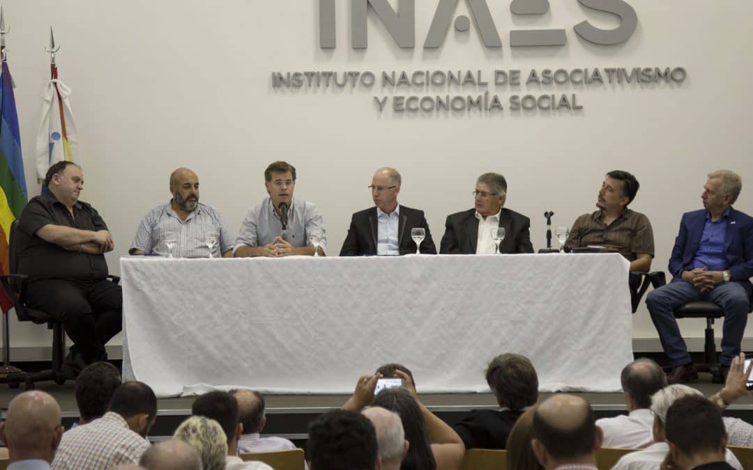 En el cierre de la jornada el presidente de Cooperar y la Alianza Cooperativa Internacional, Dr. Ariel Guarco, y el presidente del INAES, Ing. Mario Cafiero, firmaron un Convenio de colaboración para promover el Programa Municipios Solidarios en forma conjunta con la Red de Municipios Cooperativos.