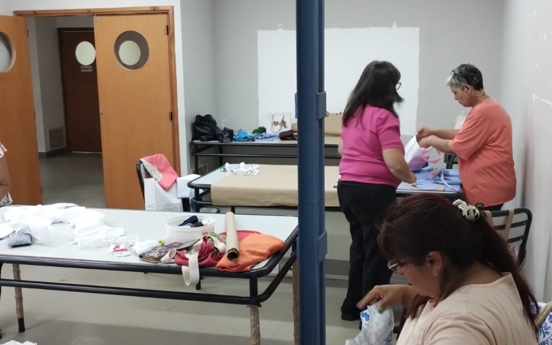 La actividad permitió que muchas mamás y también abuelas aprendieran a confeccionar una chaqueta o “pintorcito” para los niños/as que concurren a la escuela primaria o jardines de infantes, en una experiencia que combinó la recreación con el aprendizaje.