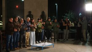 Del encuentro participaron los ex combatientes de nuestra ciudad: Carlos Aranda, Raúl Dardenne, Walter Garay, Martín Toledo, familiares de Mario Castelló, Javier Velázquez, familias y amigos, y también Hernán Scholz, de Tigre; Daniel Bernaschina, de Neuquén y Patricia Urizar de Trenque Lauquen, quienes en 2024 junto a un grupo de doce (12) personas de distintas provincias argentinas pertenecientes a grupos movilizados visitaron las Islas Malvinas.Patricia Urizar, quien destacó la iniciativa considerando que todo el homenaje, tanto la Vigilia como el monumento a los héroes, marcará “un punto de inflexión” en la comunidad, relató un poema de su autoría y entregó a los veteranos locales una imagen, copia de la que dejaron en Darwin durante su visita a las Islas.