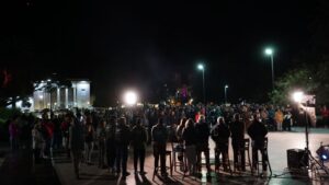 Durante la noche, se compartió café caliente y tortas para hacer frente al frío que no impidió que la comunidad se sumara esta primera Vigilia, organizada con respeto y en reconocimiento a los héroes de Malvinas.