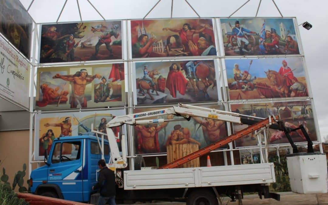 Se terminaron de colocar ayer en el frente del Museo Histórico Regional, luego de finalizado un trabajo integral de la estructura y del armazón donde van montadas, las ocho gigantografías que completan la serie de 28 murales de la obra con la que el artista Rodolfo Campodónico dejó su mirada sobre la historia e identidad bonaerense.