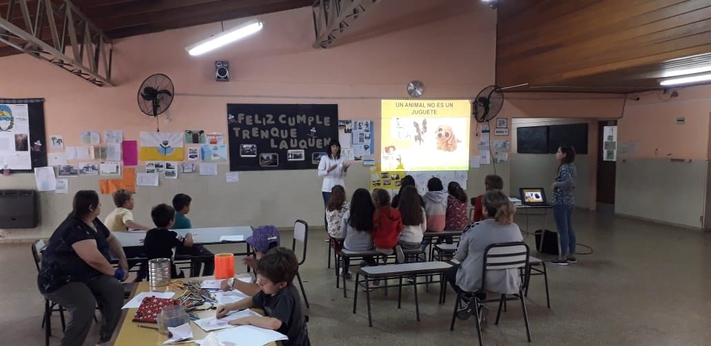 La responsable del área de Zoonosis municipal, veterinaria Rosario Guarrochena, visitó el sábado por la mañana la Escuela nº 3 para dar una charla sobre tenencia responsable de mascotas a los chicos que