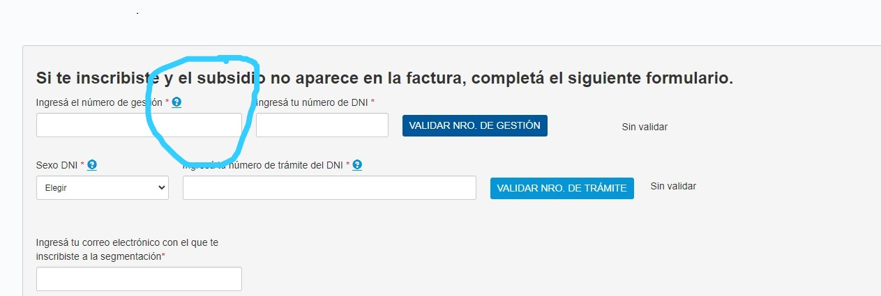 Una vez completado el número de gestión, el sistema te va a pedir que lo valides! Además se te va a requerir el número de trámite de Dni. El cual también tendrás que completar y validar.
